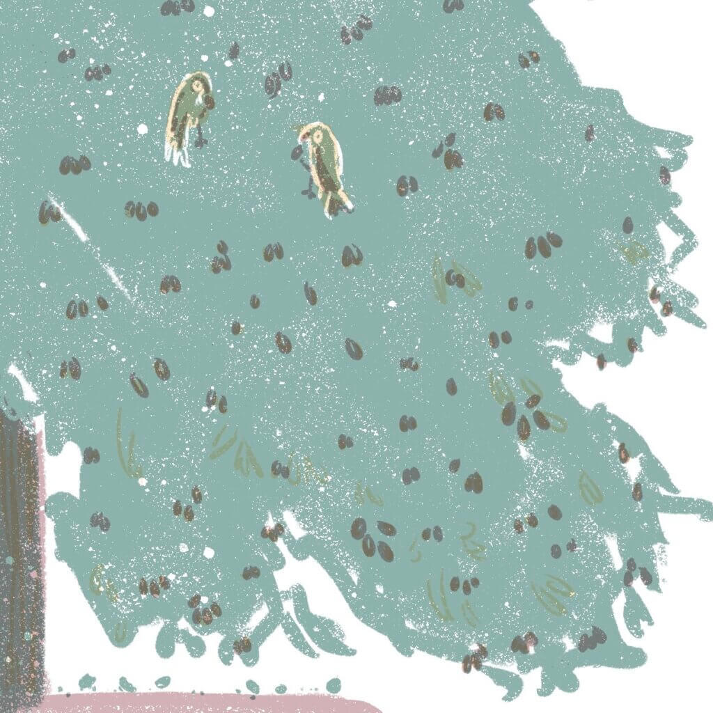 isso é um recorte de um desenho que comecei hoje. todos os dias papagaios tem vindo até a nogueira aqui do estacionamento onde moro para comer nozes ainda verdes. ❤️